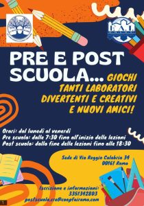 Si informano le famiglie che è attivo il servizio di pre-post Scuola. Per iscrizioni e informazioni: 📞3351342803-postscuola.cre@coopfairoma.com